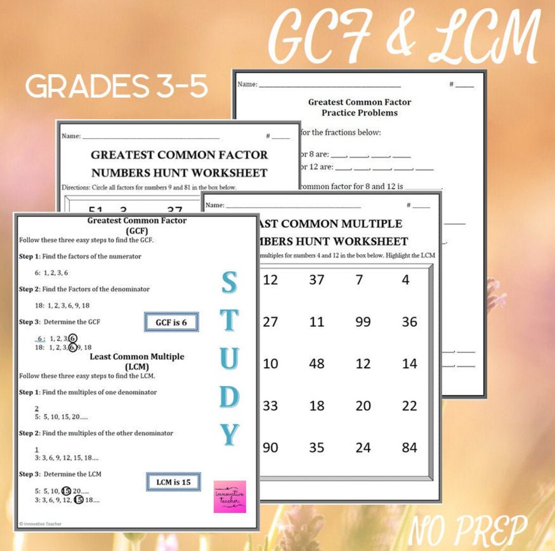 Gcf & Lcm Worksheet Teaching Resources | Teachers Pay Teachers Worksheet 1 is a fun puzzle worksheet that will have students finding the GCF and LCM and matching the correct answer to be given a clue of what to draw in a grid. If all the answers are correct they will reveal a surprise picture. This worksheet is suited for your core group and GATE/Honors students.